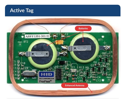 La adición de baterías de tipo botón y el aumento de la longitud de las antenas integradas se utilizan para las etiquetas «activas» y «semiactivas«.
